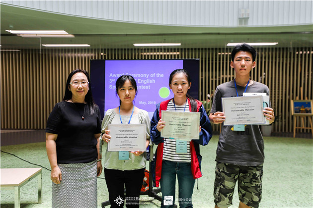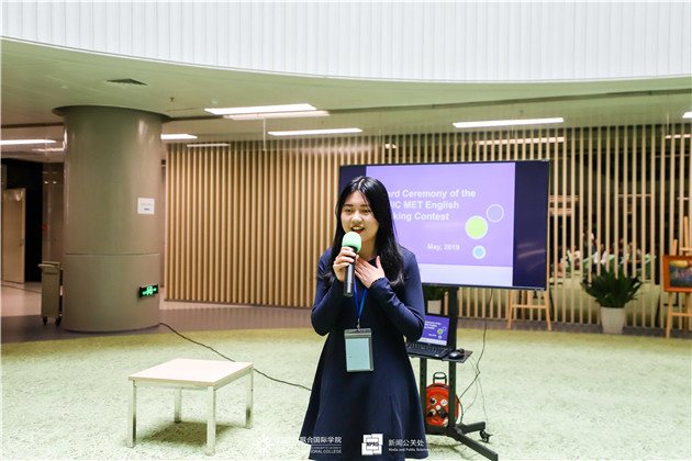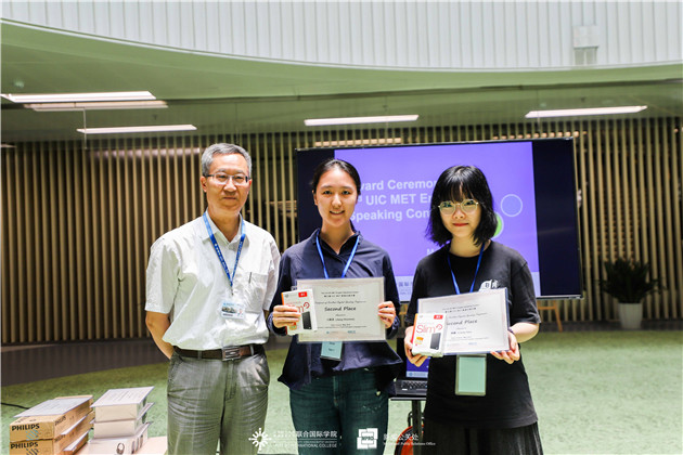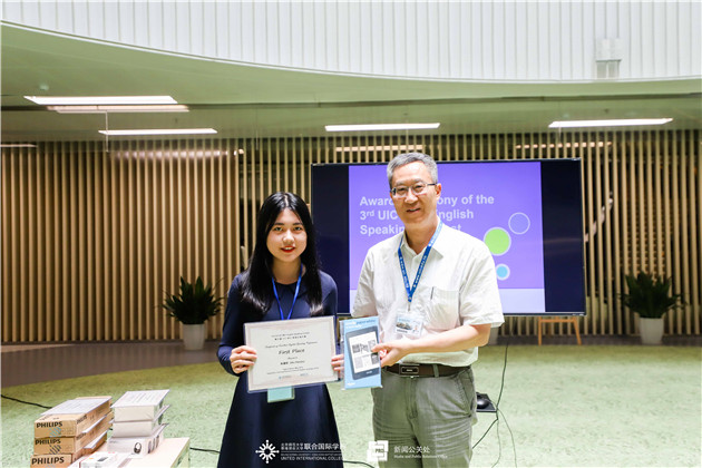张聪副校长给一等奖获奖同学吴涵秋颁奖